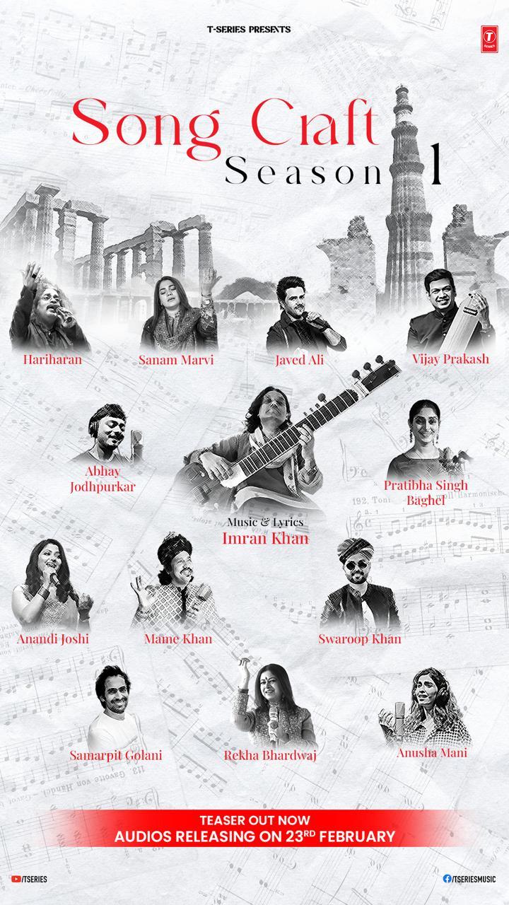 T-Series collaborates with award winning musician, composer and Sitarist Imran Khan for Song Craft Season 1 bringing together some of the Nation’s most successful singers. Releasing on 23rd February 2024, the series consists a total of 10 beautiful songs all penned and composed by Imran Khan and sung by Hariharan, Javed Ali, Rekha Bhardwaj, Sanam Marvi, Mame Khan, Vijay Prakash, Swaroop Khan, Anusha Mani, Abhay Jodhpurkar, Samarpit Golani, Anandi Joshi.